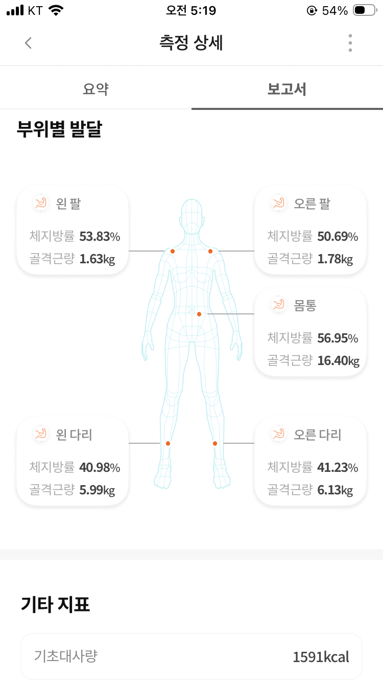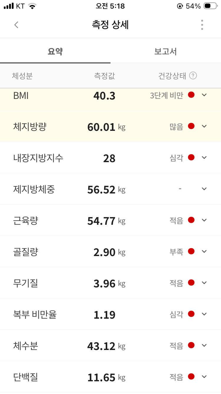당황스러운게 체중은 0.08kg 줄고, 체지방량 0.31kg증가, 골격근량 0.25kg감소