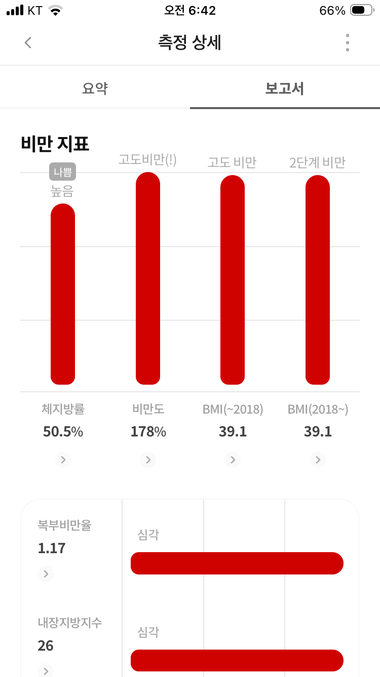 근육은 빠지고 지방은 늘었다. 어제 일반식의 영향과 극심한 스트레스, 수면패턴 등이 영향을 끼졌다.
