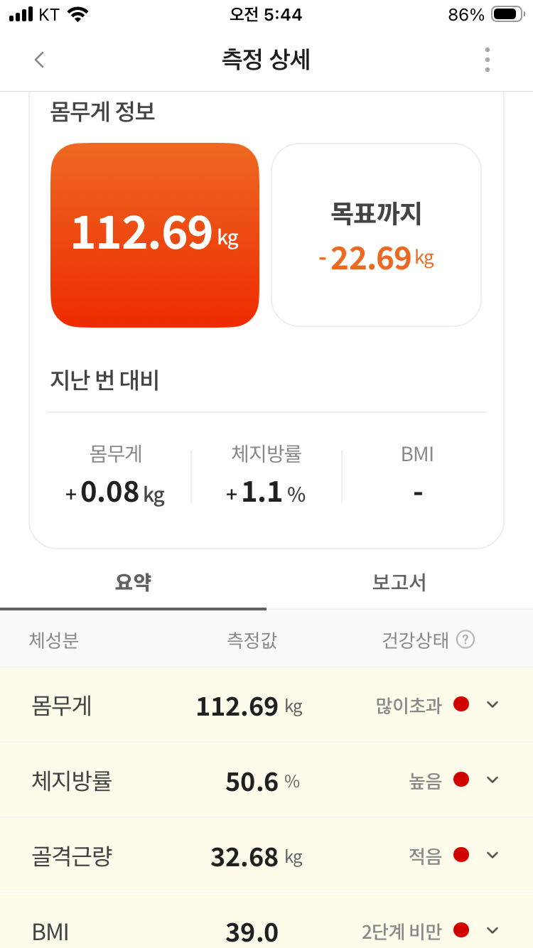 오늘자 체중 : 112.68kg