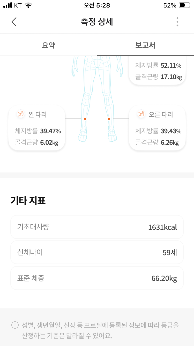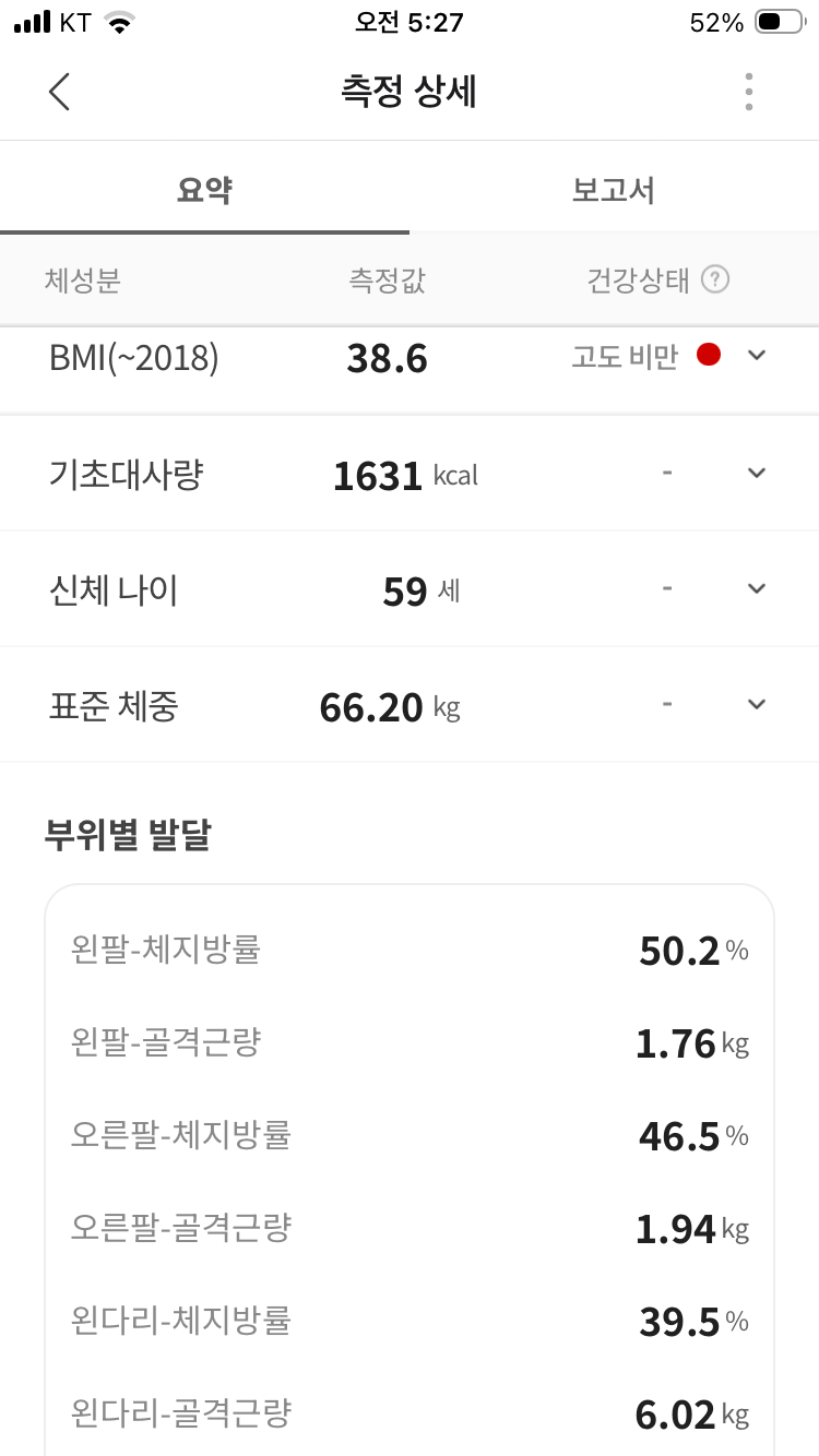 체지발량이 약간 늘고, 골격근량이 약간 줄었지만 오차범위내이다.