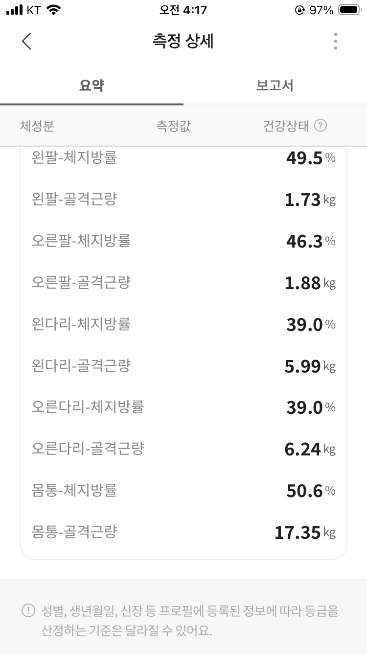 인바디 분석결과