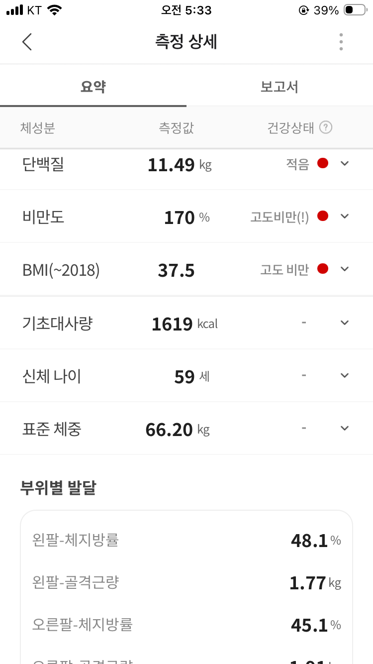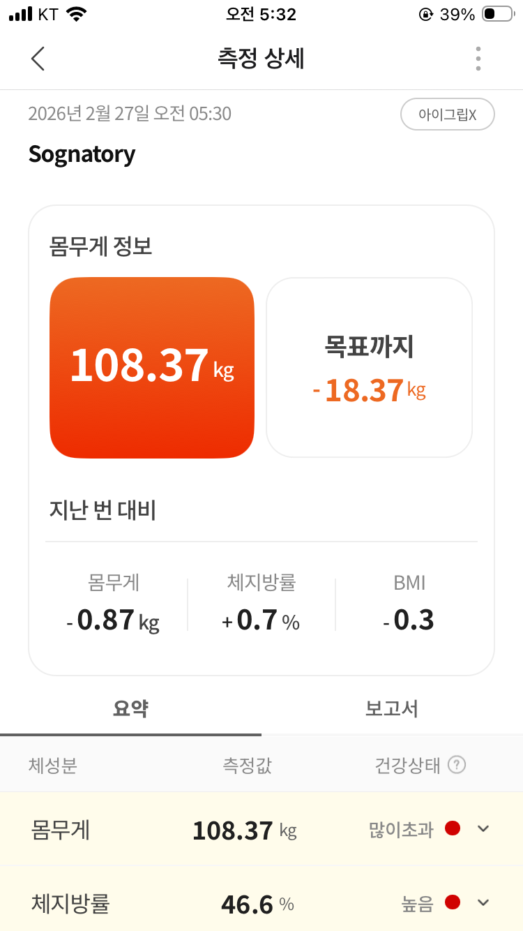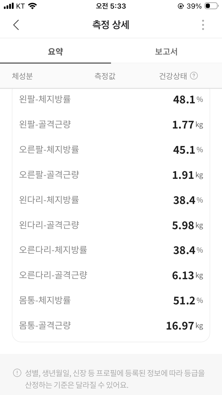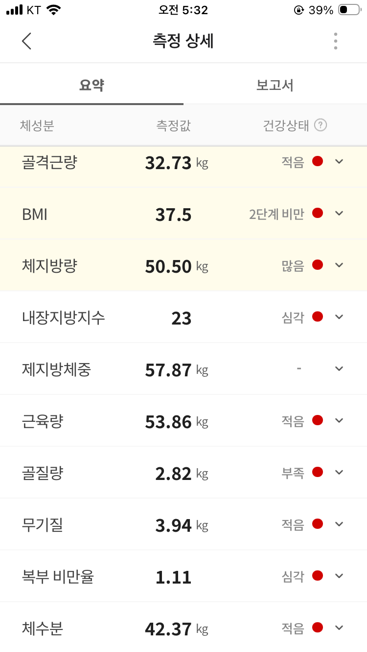 체지방과 골격근량이 맘에 들지 않지만 조만간 다시 좋게 바뀌리라.