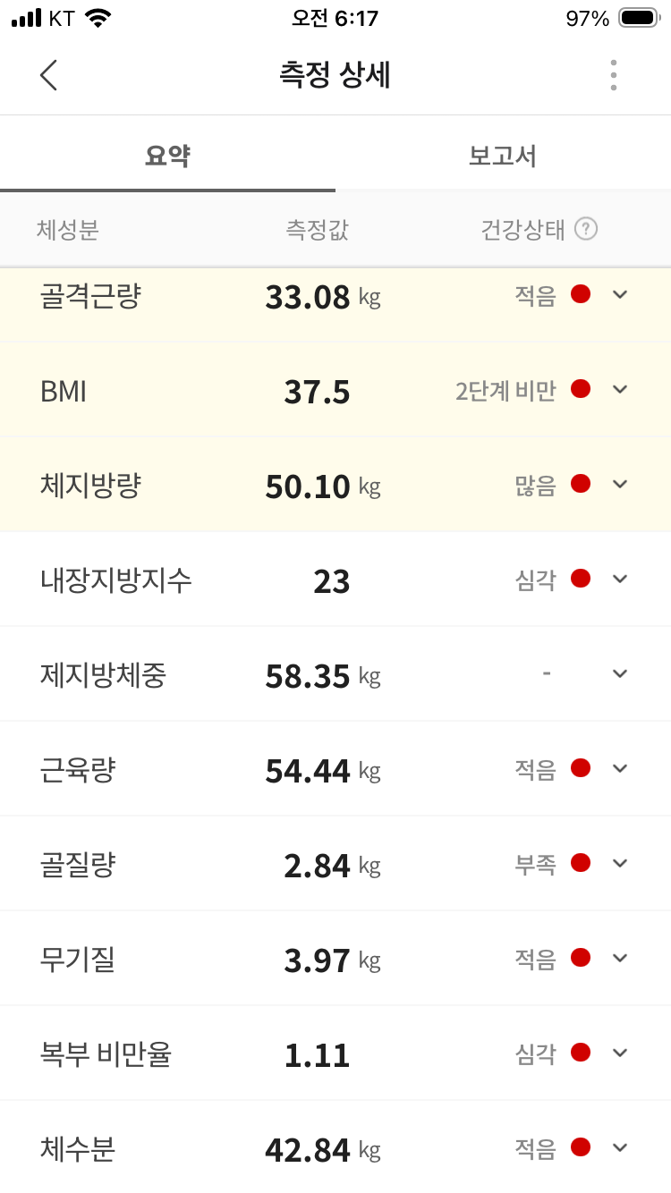 내장지방 지수도 다시 22로 내리고 체중 감량 속도를 다시 올릴 수 있도록 신경 써야 한다.