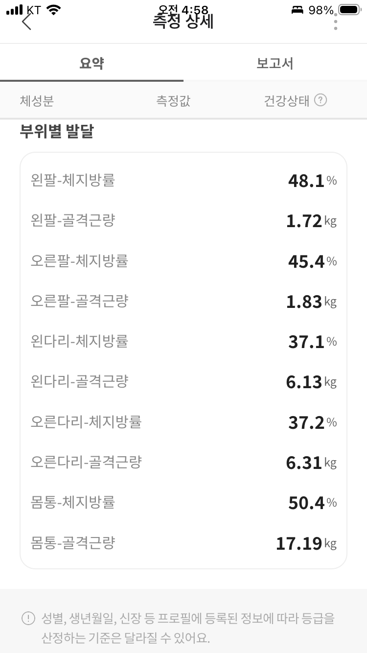인바디 분석결과