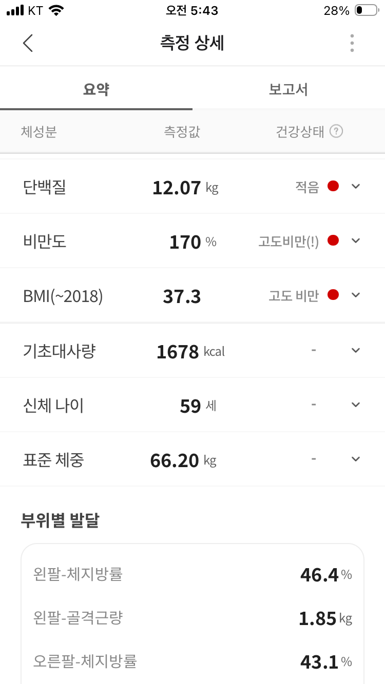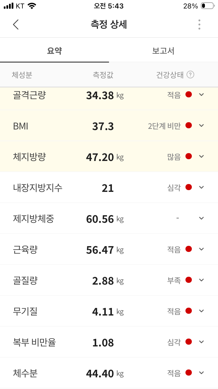 수제소세지와(조미료 안 들어감) 같이 먹었고, 근력 운동 및 걷기 운동을 같이 했기에 전체적인 수치가 좋다.