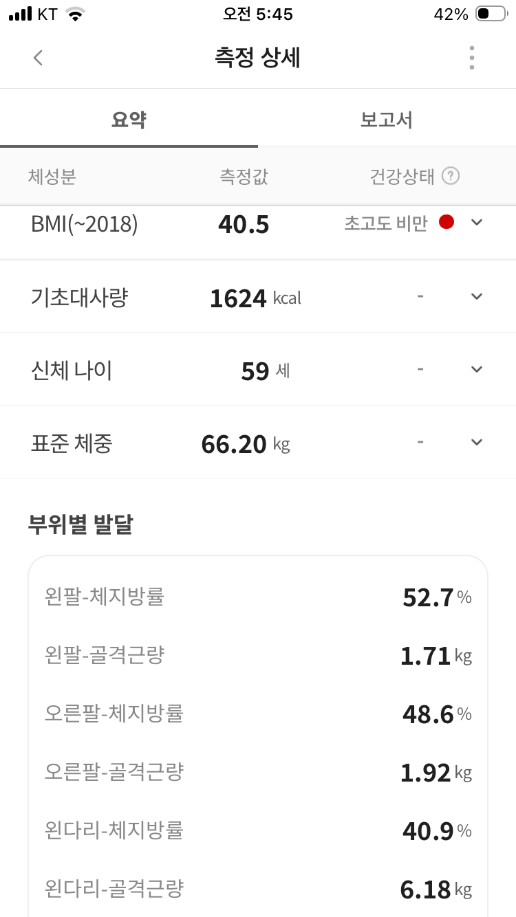 - 가능성: 어제 땀을 많이 흘리고 수분이 빠져나가면서, 기계가 이를 '체지방 감소'로 인식했을 가능성이 큽니다.
