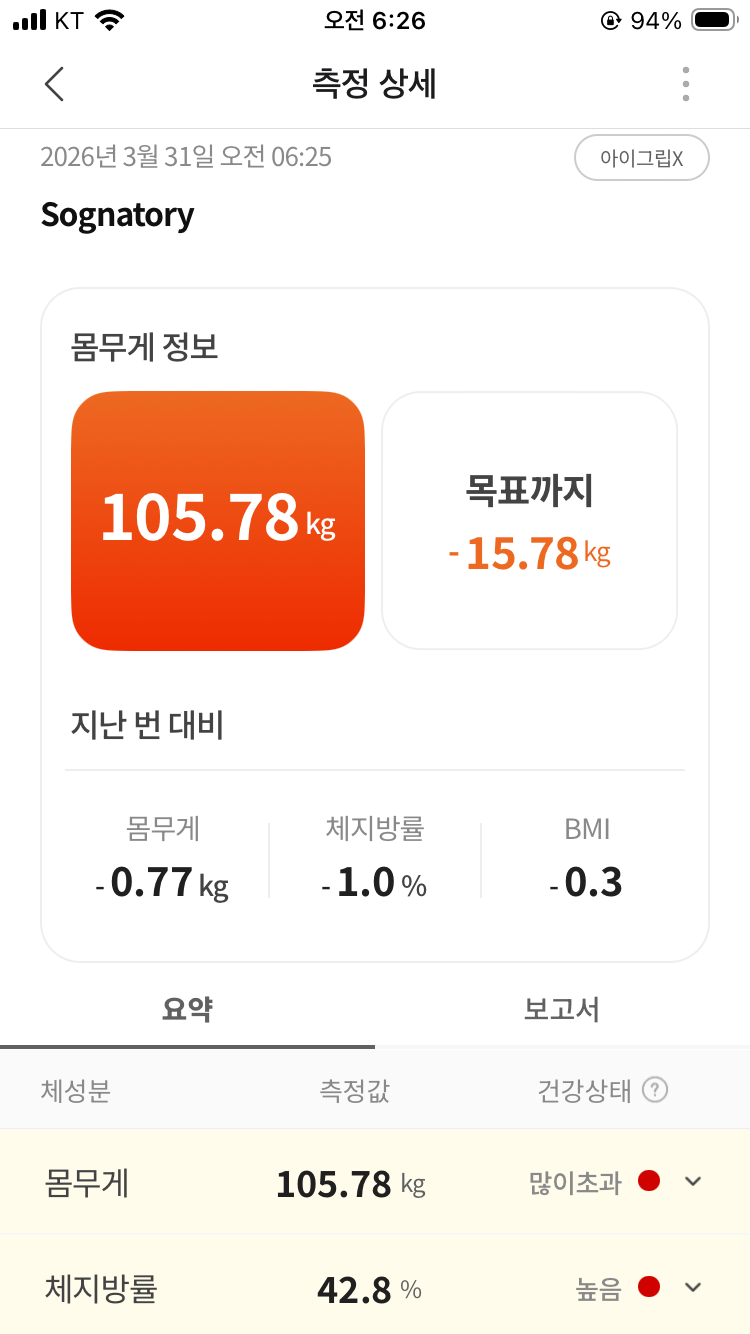 | 다이어트 81일차 아침기록 - 105kg대 유지 (1) | 2026.04.01 |